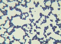 2.革兰氏染色镜检:革兰氏阳性球菌,排列成葡萄球状。