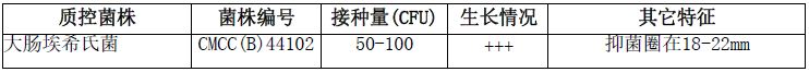 按标签用法制备培养基,接种以下质控菌株,放置36℃需氧培养18-24小时。