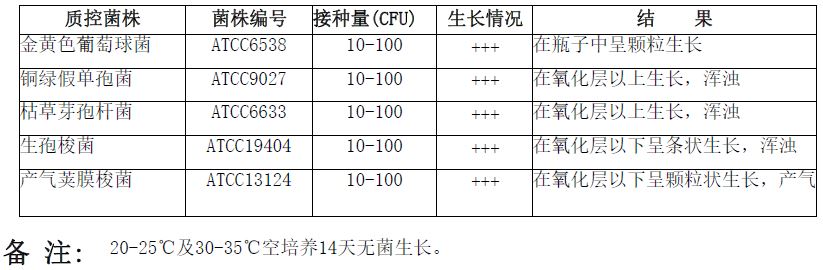 硫乙醇酸盐流体培养基瓶装(100ml)(EP标准)微生物灵敏度试验: