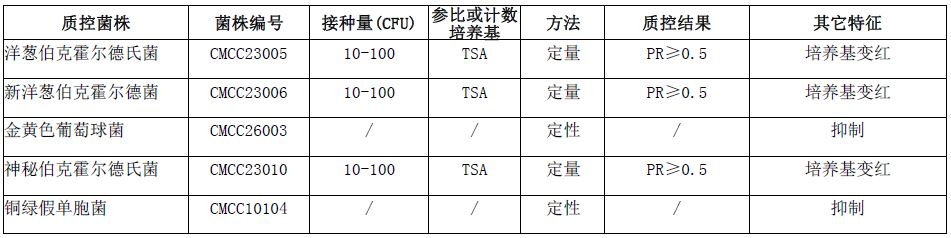 洋葱伯克霍尔德菌群选择性琼脂培养基(BCCSA)(袋装即用型)(200ml)(中国药典)微生物灵敏度试验: