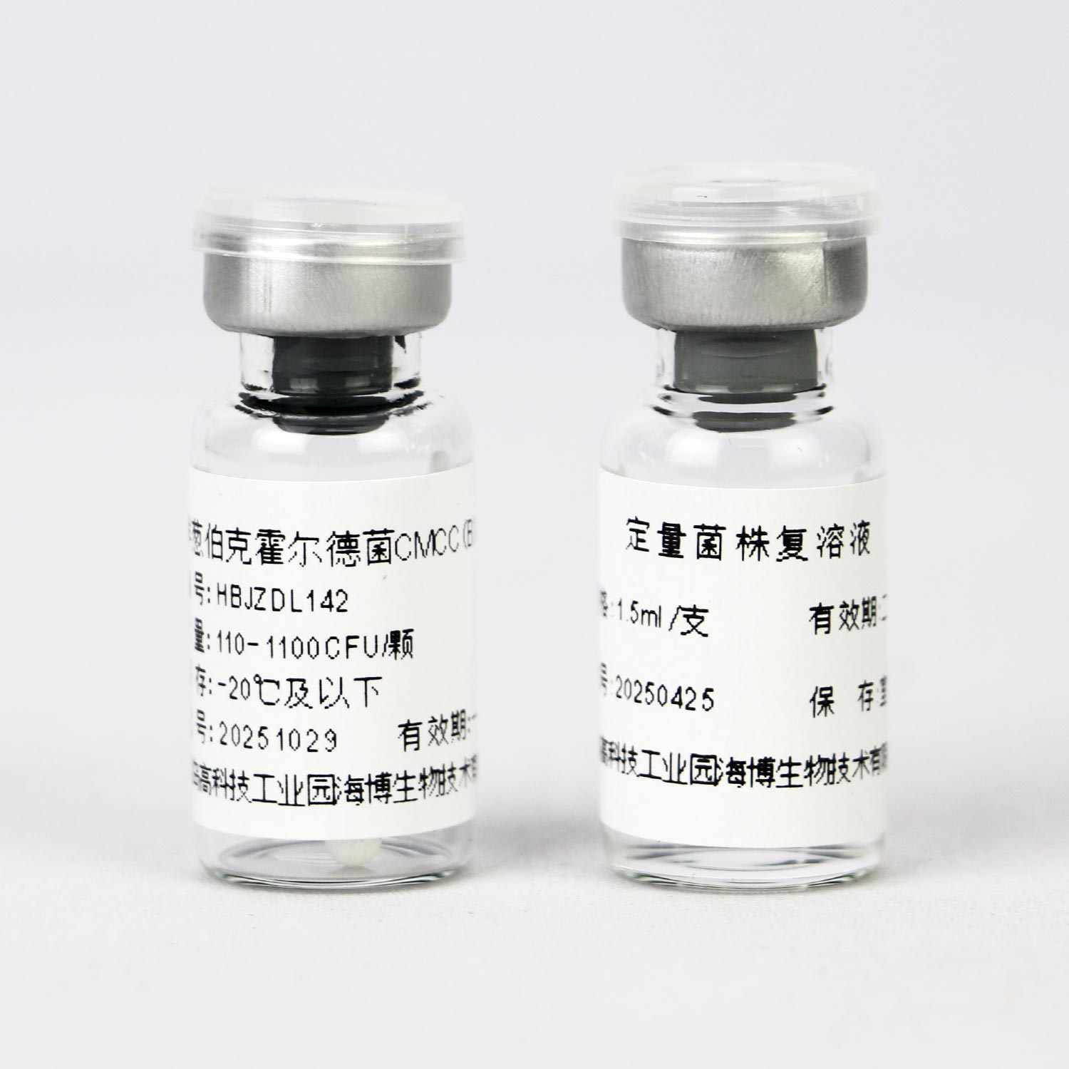 (2)无菌操作打开定量菌株瓶塞,用移液器吸取1.1mL复溶液加入西林瓶中,盖上瓶塞,涡旋震荡5~10s,使小球完全溶解。