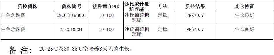 接种以下质控菌株,放置20-25℃需氧培养72小时。