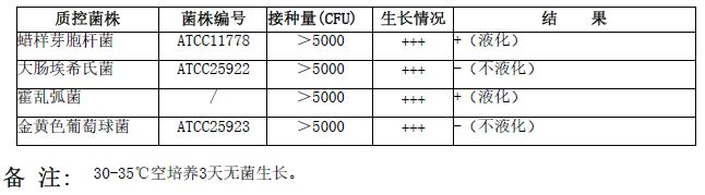接种以下质控菌株,放置37±1℃需氧培养24-48小时。