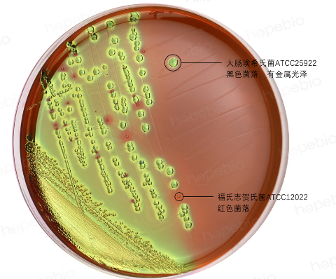 特异性利用:仅乳糖发酵菌(如大肠埃希氏菌)携带乳糖透性酶和β-半乳糖苷酶,可将乳糖水解为葡萄糖和半乳糖。非乳糖发酵菌(如沙门氏菌)因缺乏相关酶系,无法利用乳糖,这一特性被用于伊红美蓝(EMB)培养基(图1)和麦康凯培养基(图2)鉴别肠道菌。