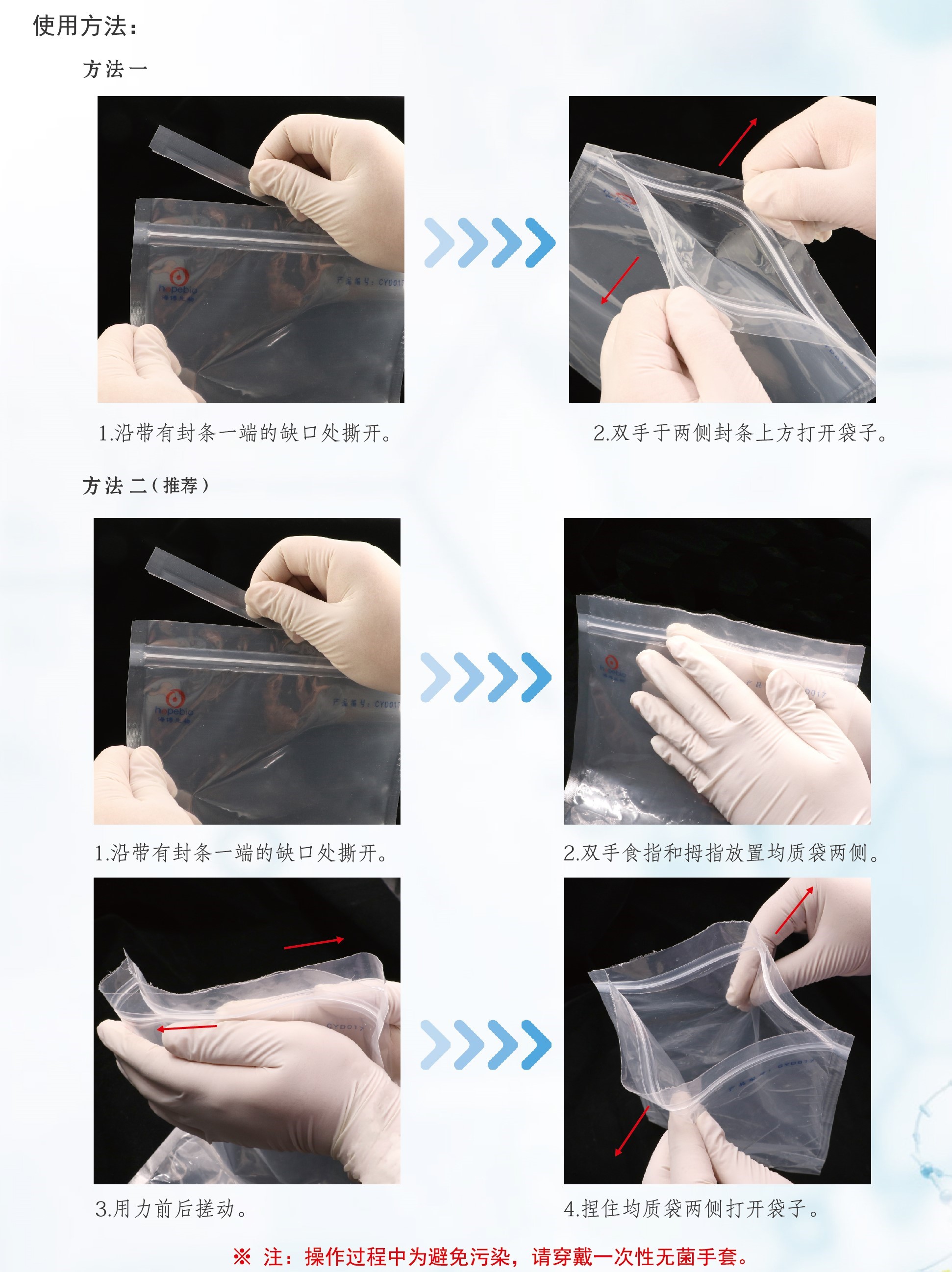 无菌采样袋(带压条)(带易撕线)(30cm*35cm)100个/包 |