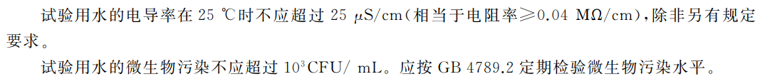 图1 GB 4789.28-2024中对于试验用水要求的描述