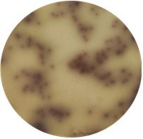 将推测为阳性的菌落转接到胆汁七叶苷叠氮钠琼脂平板上,在44℃±0.5℃条件下培养48h。若菌落内或周围呈现褐色至黑色,则为粪链球菌。如图1。
