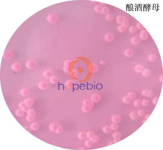 图1 酿酒酵母在玫瑰红钠琼脂上的菌落特征