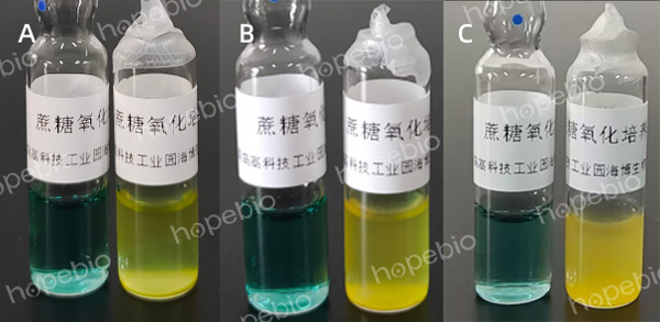 图6 蔗糖氧化试验结果(左侧为空白对照管)