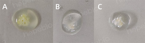 用玻璃棒或一次性接种针挑取单个特征性菌落,置于洁净载玻片上,滴加3%过氧化氢溶液,观察气泡产生情况。洋葱伯克霍尔德菌为迟缓产气,1s后缓慢出现气泡,如图9所示。