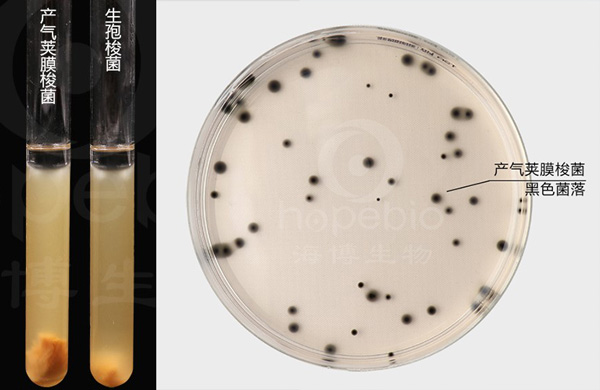 图1 梭菌在庖肉培养基及强化梭菌鉴别琼脂上的生长现象
