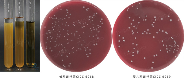 图3 双歧杆菌在PYG液体培养基、BLB琼脂上的生长现象