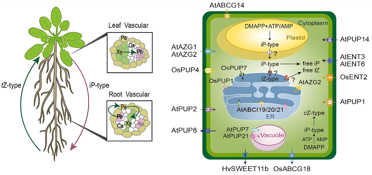 合成后的细胞分裂素可转化为核苷、葡萄糖苷等无活性储存形式,按需活化;同时通过细胞分裂素氧化酶/脱氢酶(CKX)不可逆降解,维持内源激素水平稳定。细胞分裂素主要在根尖分生区合成,未成熟种子、茎尖等部位也可合成,经木质部向上运输至地上部,参与调控细胞分裂、芽分化及植株衰老等过程。