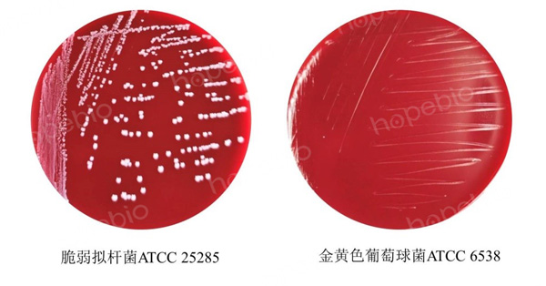 原理:䏡胨、胰酪蛋白胨、大豆胨、酵母浸粉、牛肉浸粉、牛肝浸粉提供微生物生长所需的氮源、碳源、矿物质、维生素等;消化血清粉能够有效促脆弱拟杆菌的生长;葡萄糖提供碳源;磷酸二氢钾能够调节pH;氯化钠维持渗透压;可溶性淀粉能够吸收中和有毒的代谢产物;L-半胱氨酸和硫乙醇酸钠能够降低培养基氧化还原电位,有利于厌氧菌生长;琼脂是凝固剂。添加剂中的氯化血红素、维生素K1和脱纤维兔血能够有效促脆弱拟杆菌的生长;抗生素抑制其他细菌生长。