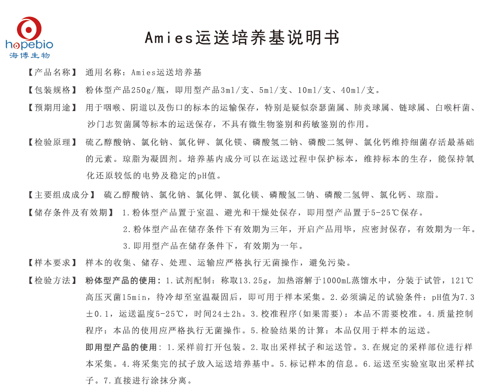 Amies运送培养基说明书