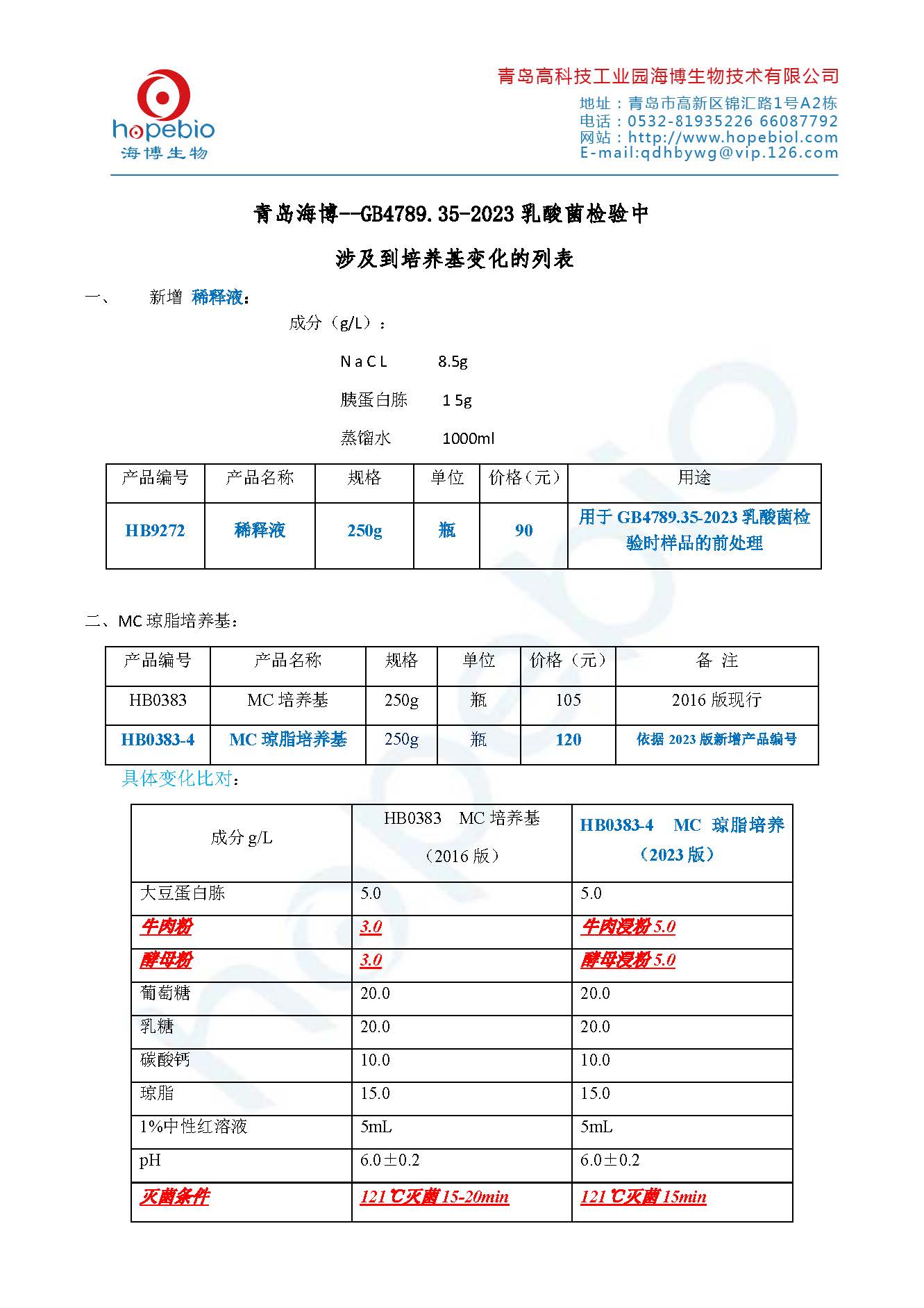 青岛海博—GB4789.35-2023乳酸菌检验中涉及培养基变化的列表