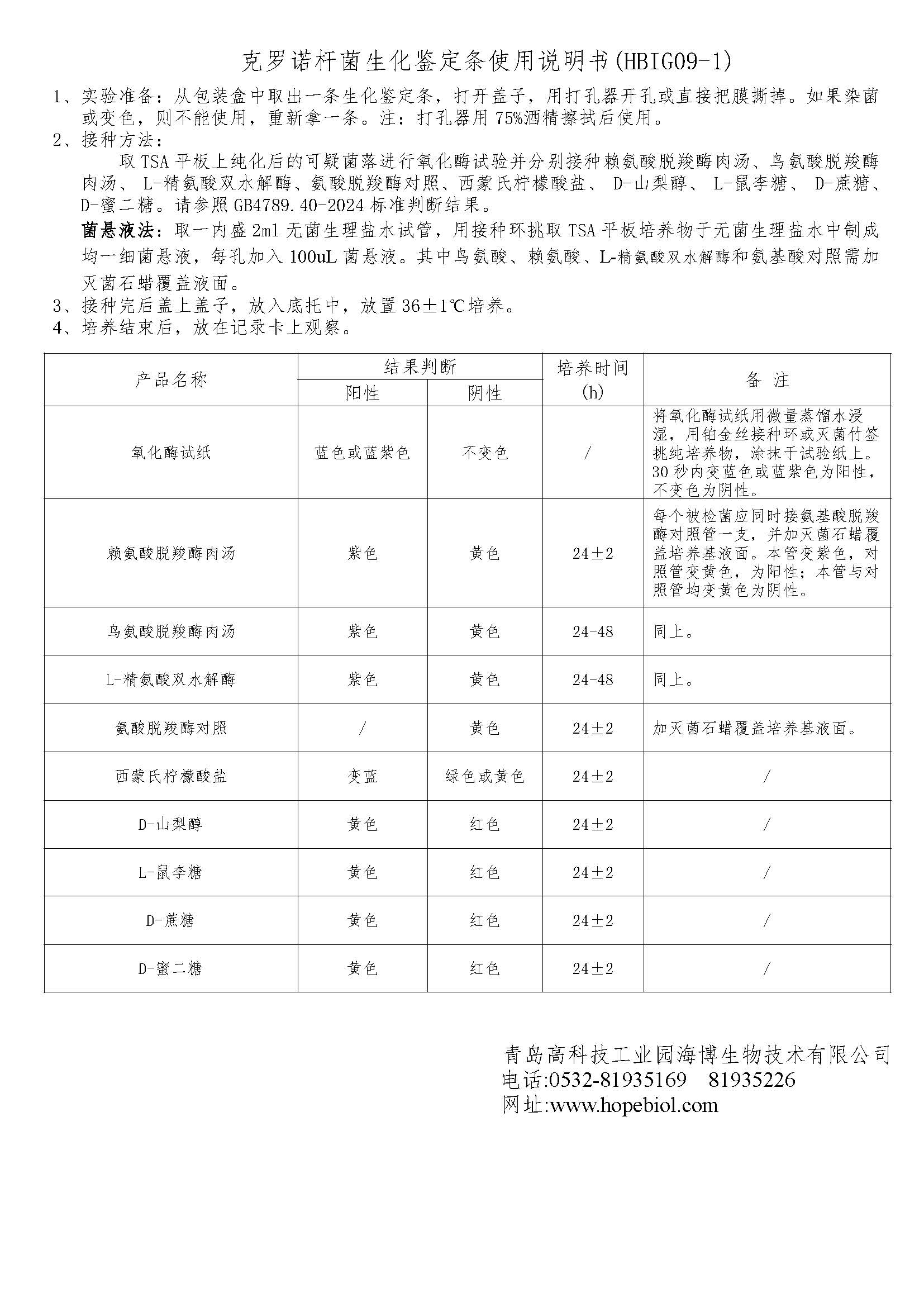 HBI克罗诺杆菌生化鉴定条说明书(HBIG09-1)