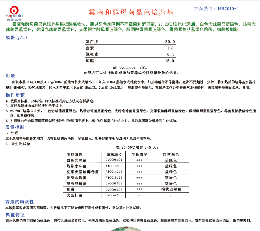 HB7010-1 霉菌和酵母菌显色培养基说明书