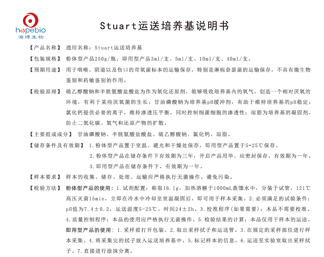 Stuart运送培养基说明书