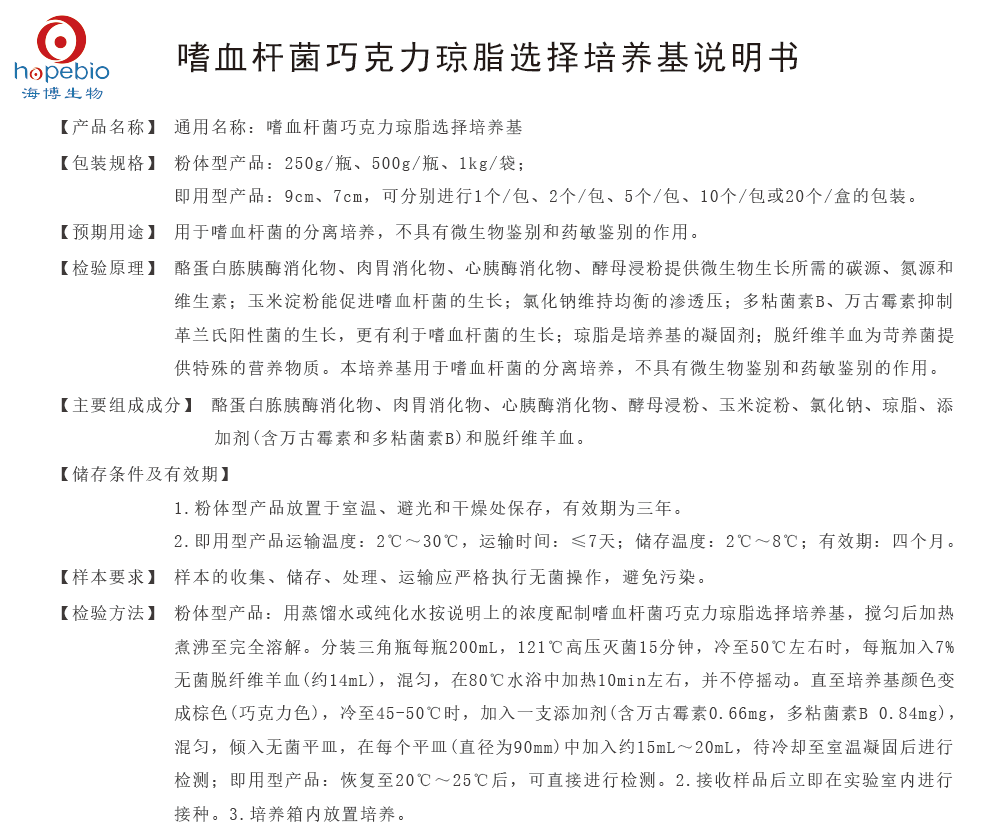 嗜血杆菌巧克力琼脂选择培养基说明书