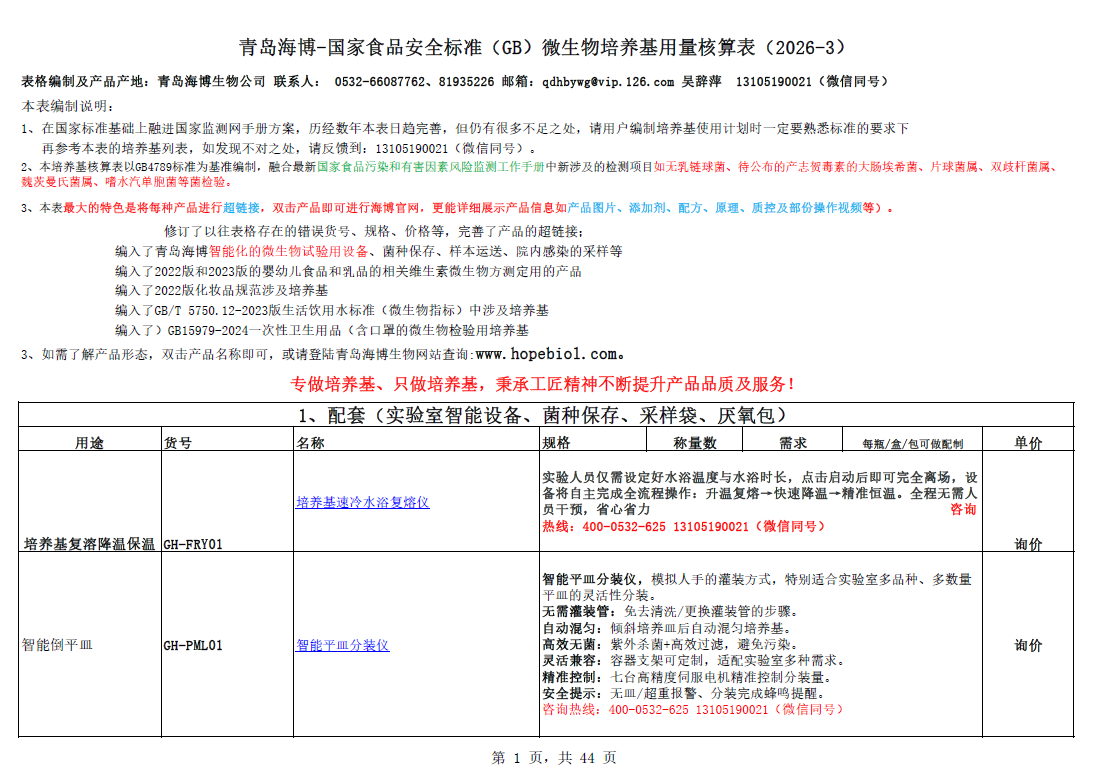 青岛海博(2026)--国家食品安全标准(GB)微生物培养基用量核算表